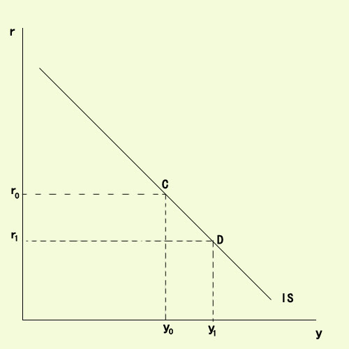 2.根据产品市场和货币市场一般均衡的IS—LM模型,投资是利率的函数,利率下降则投资增加,从而引起产出增加,失业率降低,经济处于扩张周期。如下图所示,均衡利率从r0处下降至r1处,均衡产出由之前的y0增加到y1。