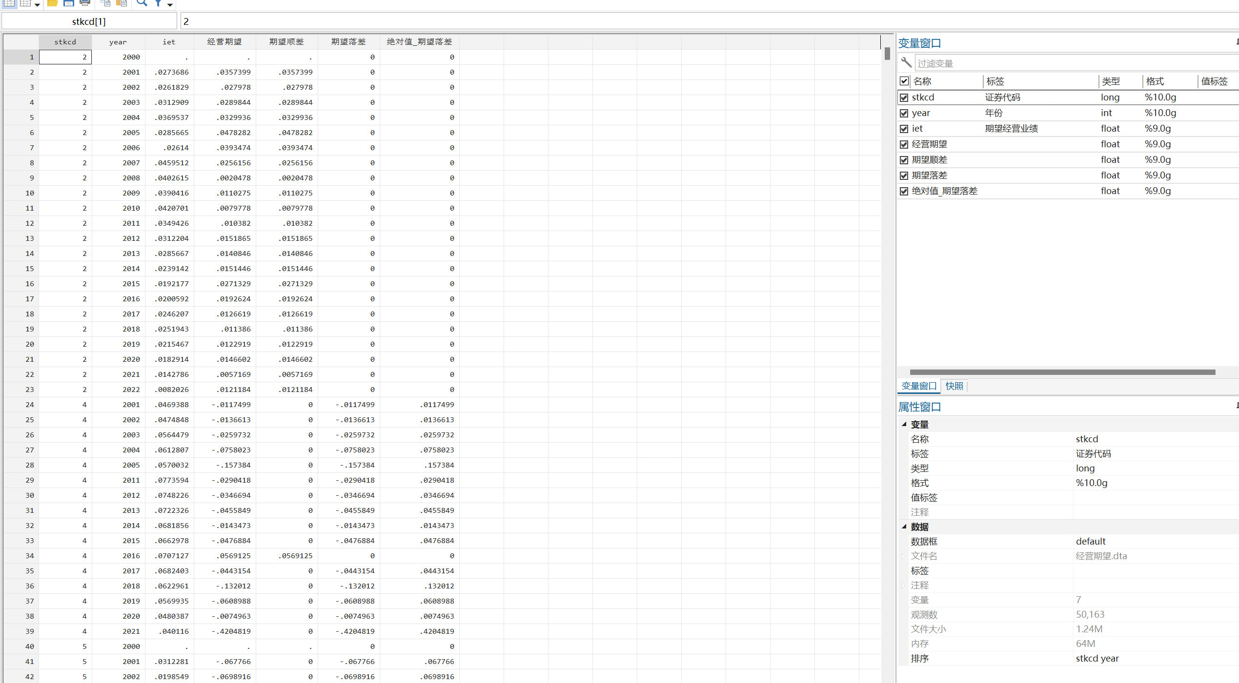 在此基础上, 本文构建了两个变量: 期望顺差和期望落差. 当企业经营期望大于 0 时,则期望顺差为实际差值, 期望落差计为 0; 同时, 当企业经营期望小于 0 时, 则期望顺差计为0, 期望落差计为实际差值的绝对值, 得到截尾处理的变量.