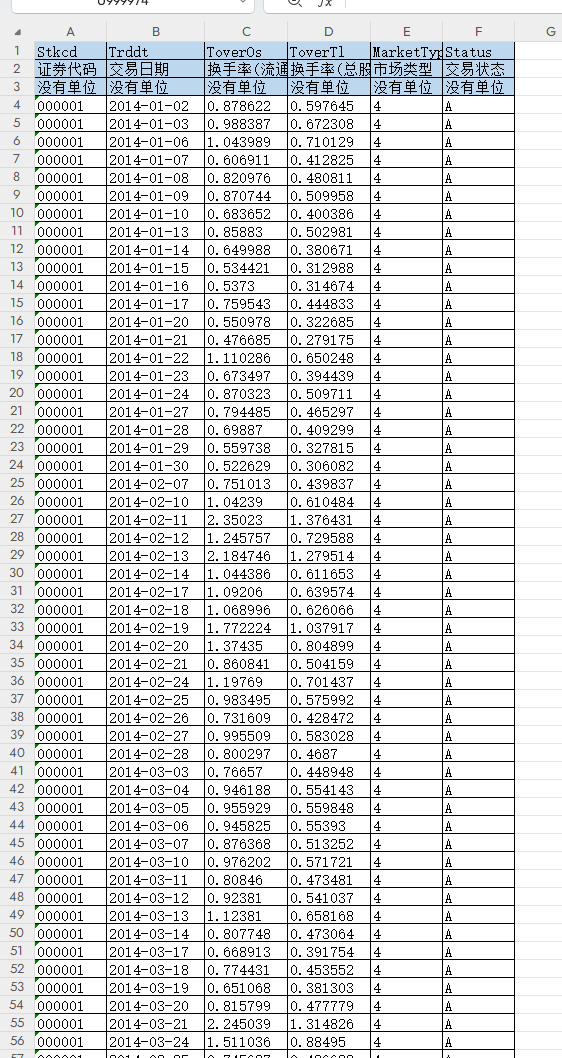 ToverOs [换手率(流通股数)(%)] - 计算公式为:日个股交易股数*100/流通股份