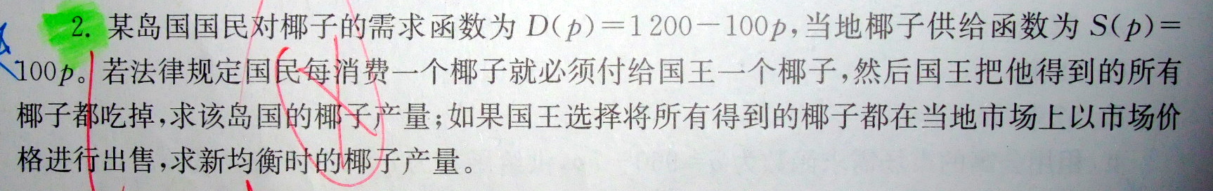 市场的总需求是国民和国王的总和,虽然这个国王吃椰子不给钱,国王的需求量和国民一样,因为国民每吃一个国王也吃一个