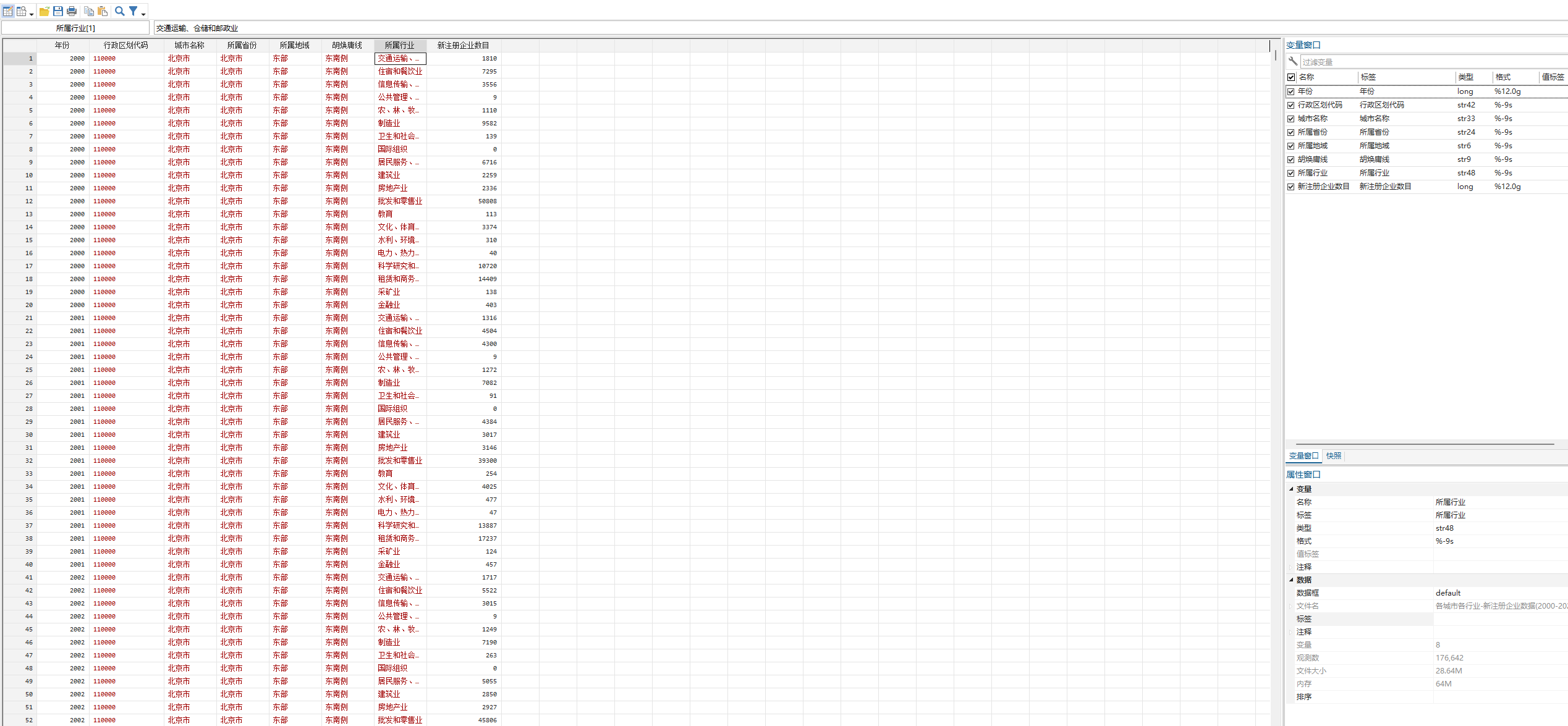 各城市各行业-新注册企业数据-stata版