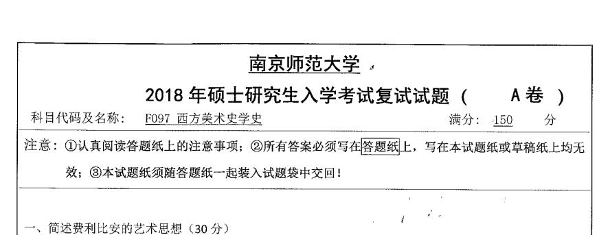 2018西方美术史学史南师大南京师范大学考研复试真题(无答案)