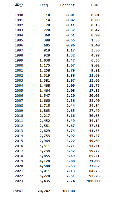 本数据参考杜勇老师的做法,采用剔除金融投资收益的下年度资产收益率来衡量企业未来主业业绩,两个指标的具体计算公式为:1、Core Perf1t+1=(营业利润-投资收益-公允价值变动收益+对联营企业和合营企业的投资收益)/总资产;2、Core Perf2t+1=(利润总额-投资收益-公允价值变动收益+对联营企业和合营企业的投资收益)/总资产。
