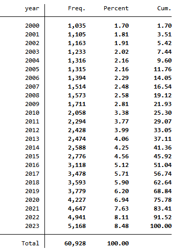 - 文件格式:Dta格式(使用Stata打开)、Xlsx格式(使用Excel打开)