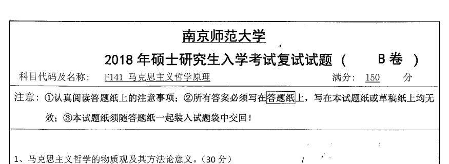 2018马克思主义哲学原理南师大南京师范大学考研复试真题(无答案).pdf