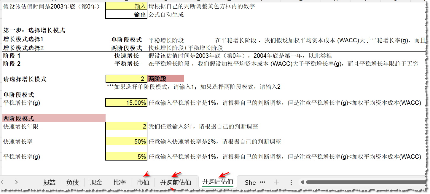 联想并购估值-包括如下spreadsheet