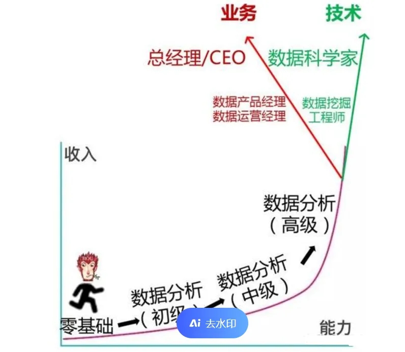 数据分析师的发展路径统共来说可以分为偏业务和偏技术两个方面的发展路径: