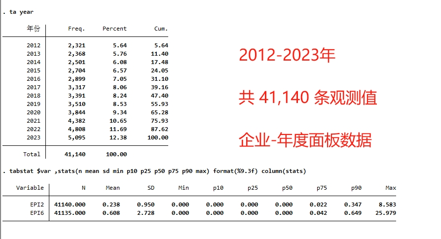 范围:2012 - 2023 年,共 41,140 条观测值,全部A股上市公司