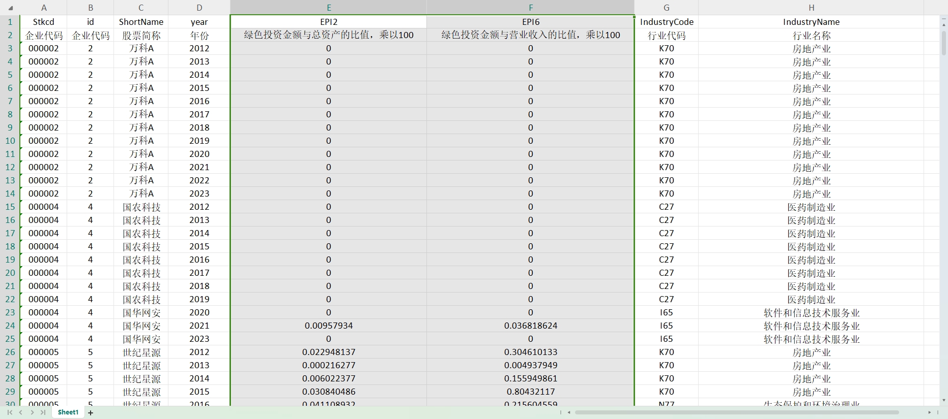 2023-2012年企业绿色投资、环保投资