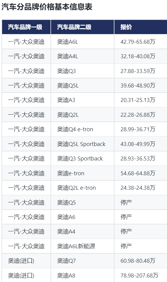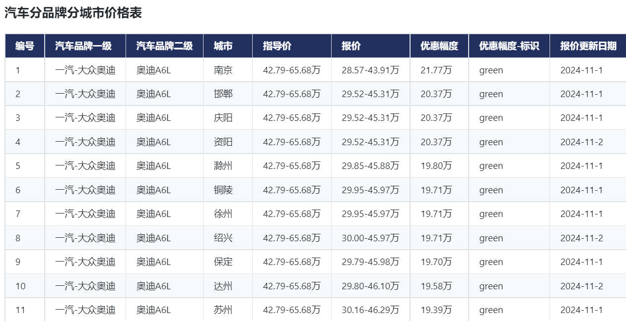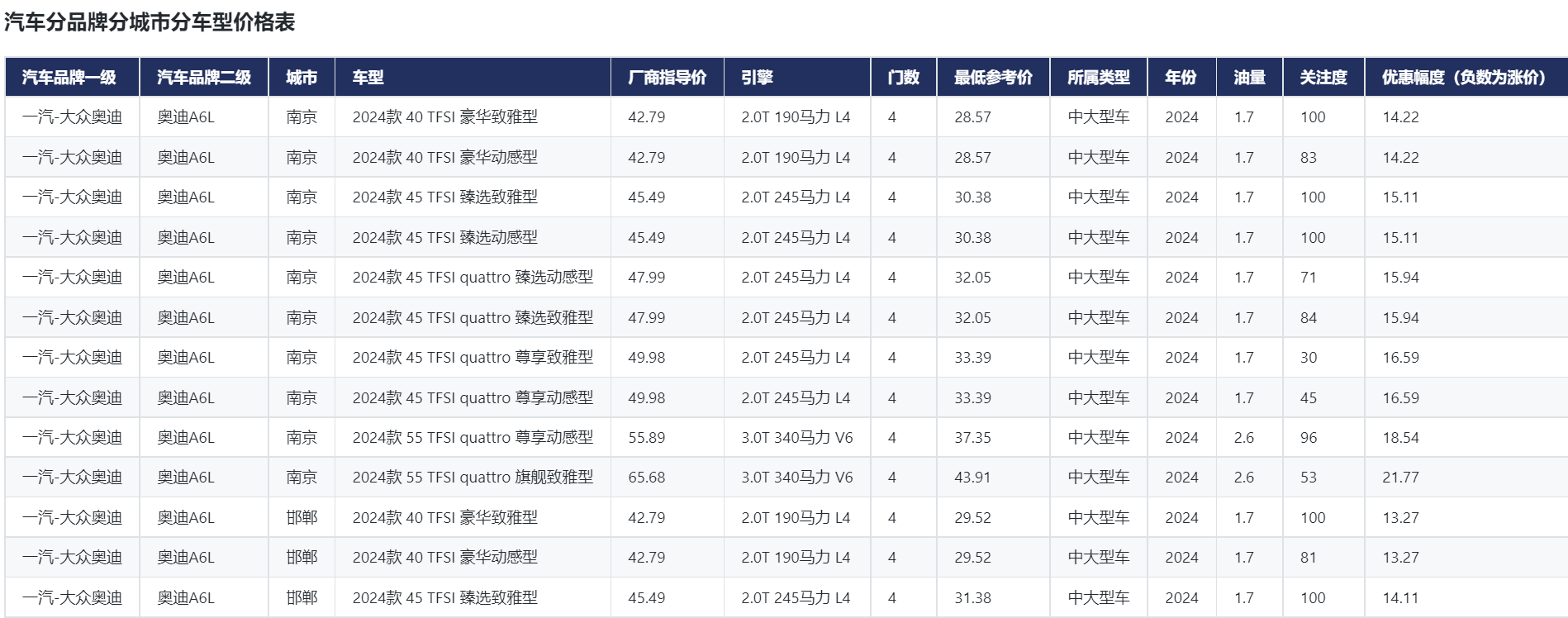 汽车分品牌价格基本信息表/汽车分品牌分城市价格表/汽车分品牌分城市分车型价格表:2024.10(截面数据)