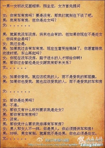 依我愚见,相亲是最符合市场规则的一种婚恋处理模式:在这个理论上处于完全竞争的市场上,大家都可以提自己的要求,又都面临着别人的要求。之所以说完全竞争,因为即便每个参与其中的player都有各自的特殊性,但是既然开始玩相亲了,说明大家伙已经不那么在乎特定的东西,没有那么死性不改,只是想找个合适的人,而不是执着于某个特殊的个体和某种特殊的个性。于是乎,个人的要求也就退居二线,真正发挥作用的,也就只剩社会共性的要求。比如说,男方必须有家底,有房有车有存款,而相貌啊才华啊能力啊人品啊之前的经历啊,诸如此类的种种,虽则亦有定价,但是权重已然变得轻了不少;而女方呢,相貌啊年龄啊身材啊是不是处女有没有堕胎就变得更加关键,而品性啊习惯啊等等,虽然亦在考虑当中,但并非自由恋爱时期那么绝对和重要。