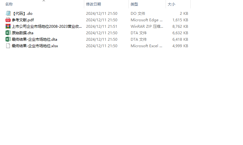 企业代码 证券代码 年份 股票简称 营业收入与行业营业收入的比值 主营业务收入与行业主营业务收入的比值 如果企业市场地位1大于中位数,则属于高市场地位,赋值为1,否则为0 如果企业市场地位2大于中位数,则属于高市场地位,赋值为1,否则为0 营业收入 主营业务收入 行业代码 行业名称 制造业取两位代码,其他行业取一位代码