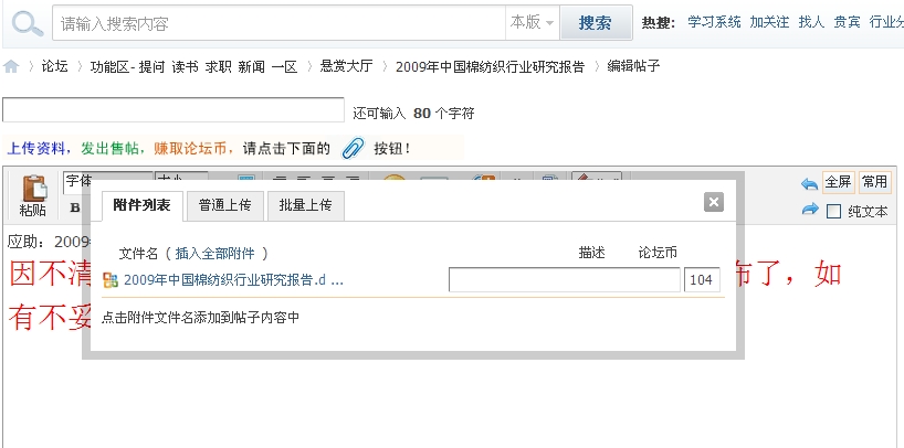 跟帖上传的附加你无法删除,请尽快改进