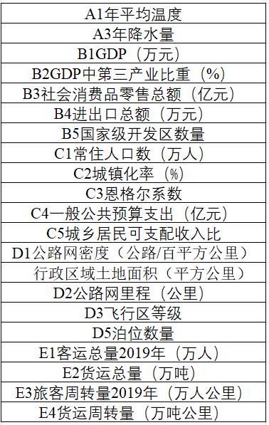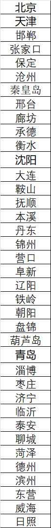 根据统计年鉴得到环渤海城市数据,包括(山东省、辽宁省、河北省、北京和天津)各地级市的数据指标。具体数据指标如下所示。
