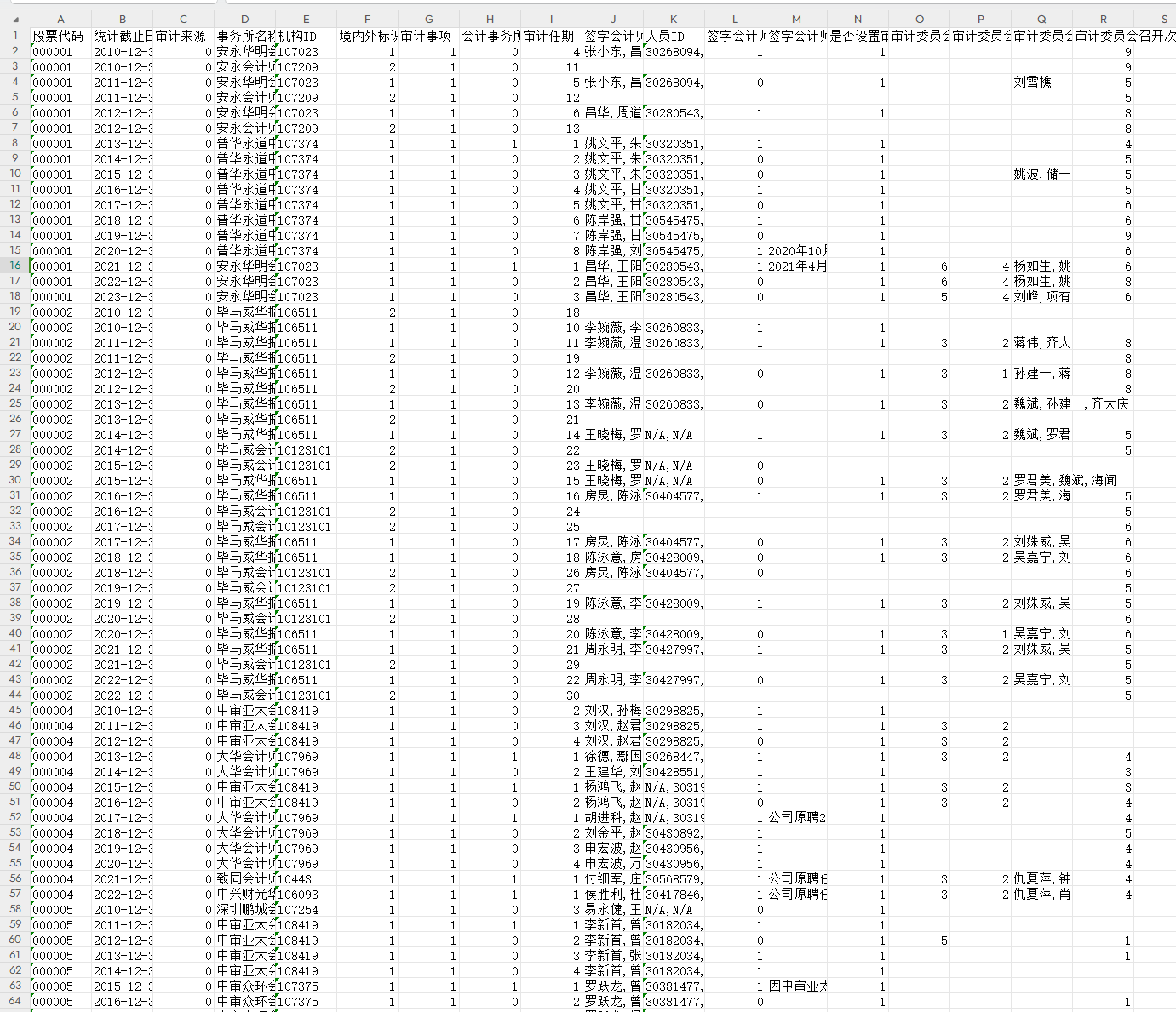 Scode[股票代码]-会计师事务所当年审计的上市公司股票代码