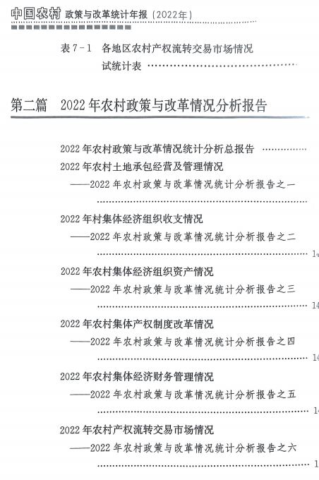中国农村经营管理统计年报、中国政策与改革统计年报(2015-2022年)