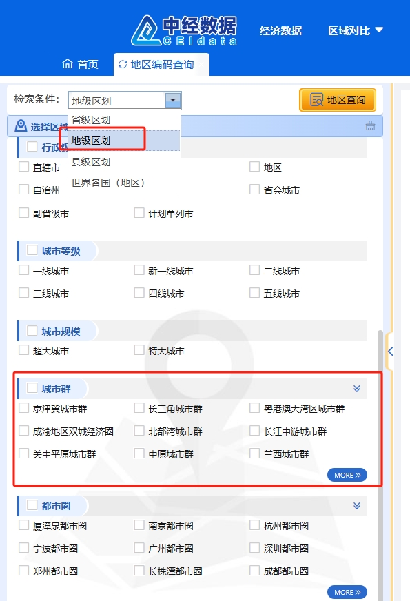 求对全国地级市分类成十大城市群的数据,需要有对应的城市编码,感谢!