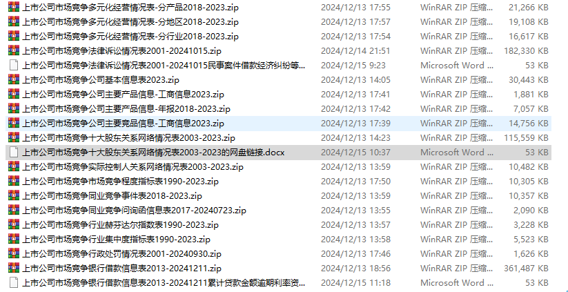 上市公司同业竞争市场竞争多元化经营研究数据集2001-2024分产品竞品十大股东关系网络等