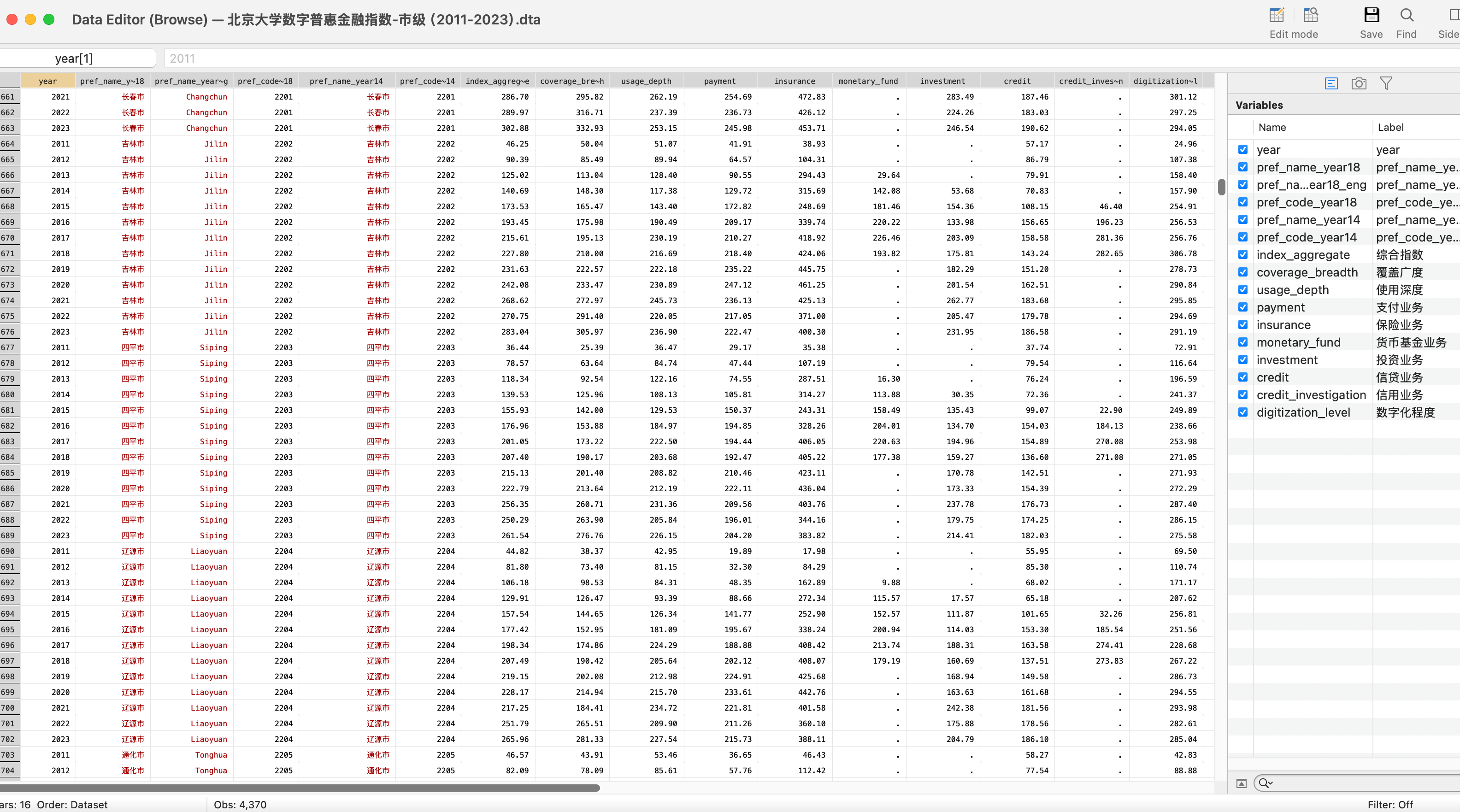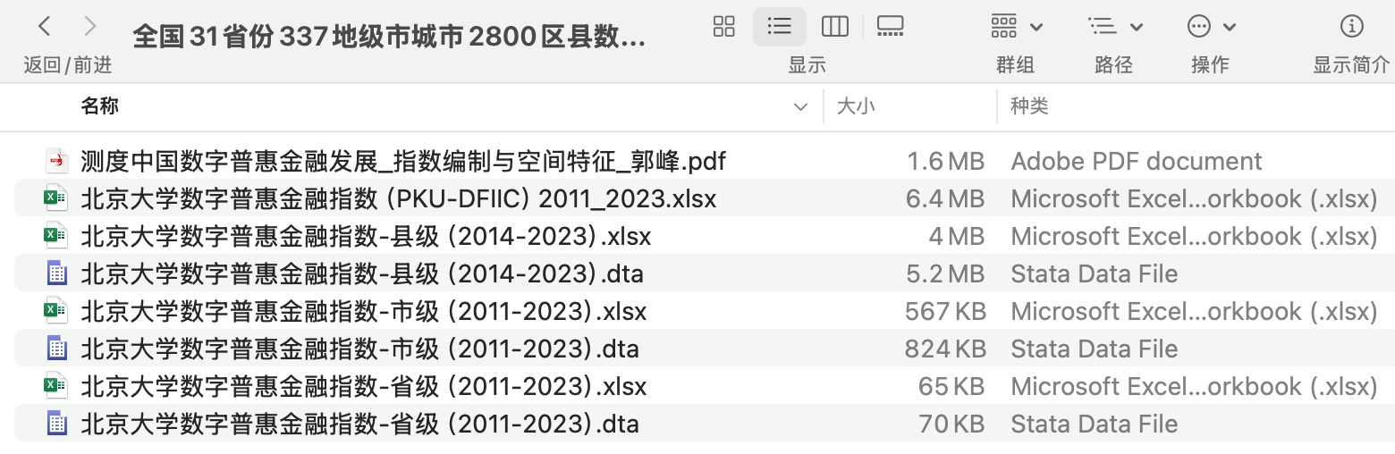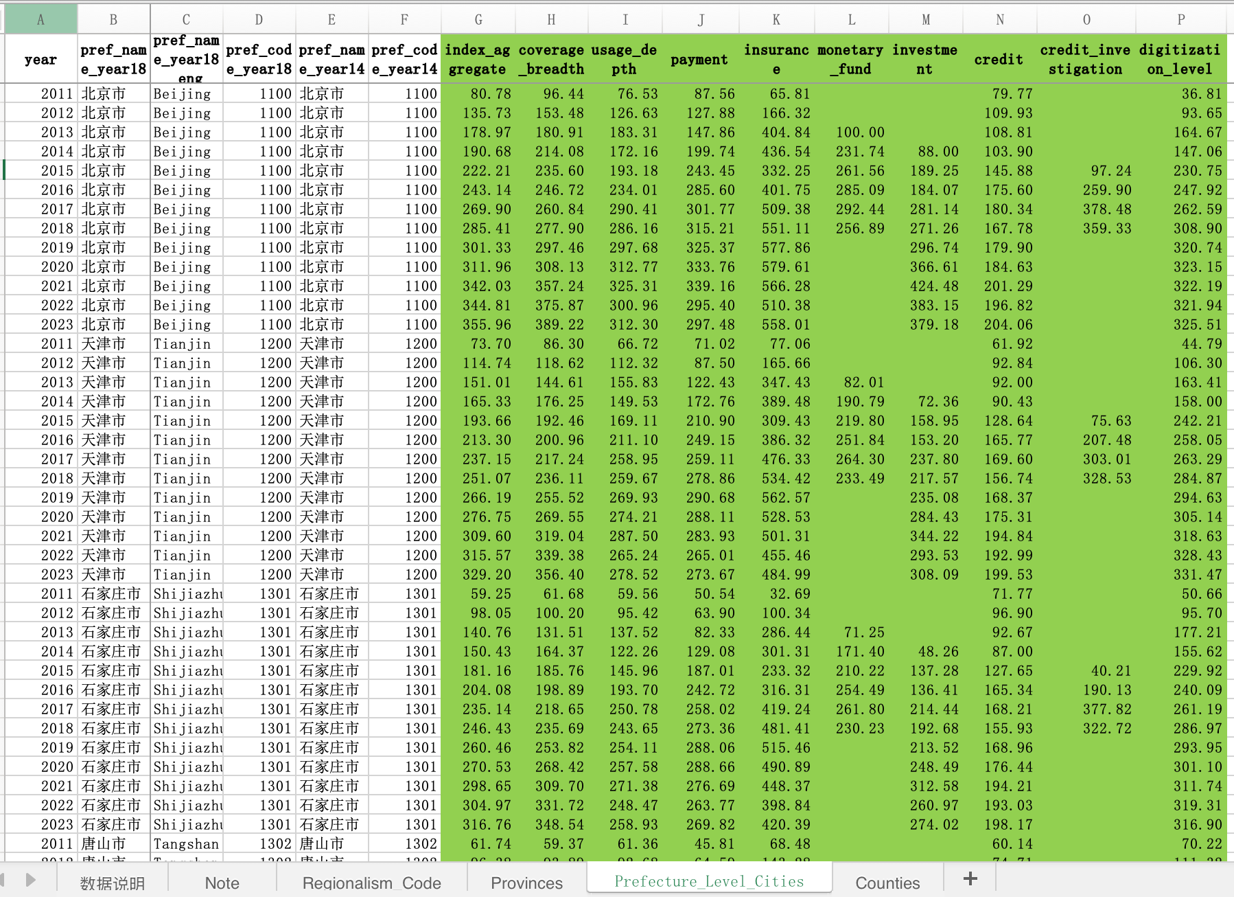 3、北大数字普惠金融指数-城市指数数据:(含 Excel + Stata格式)