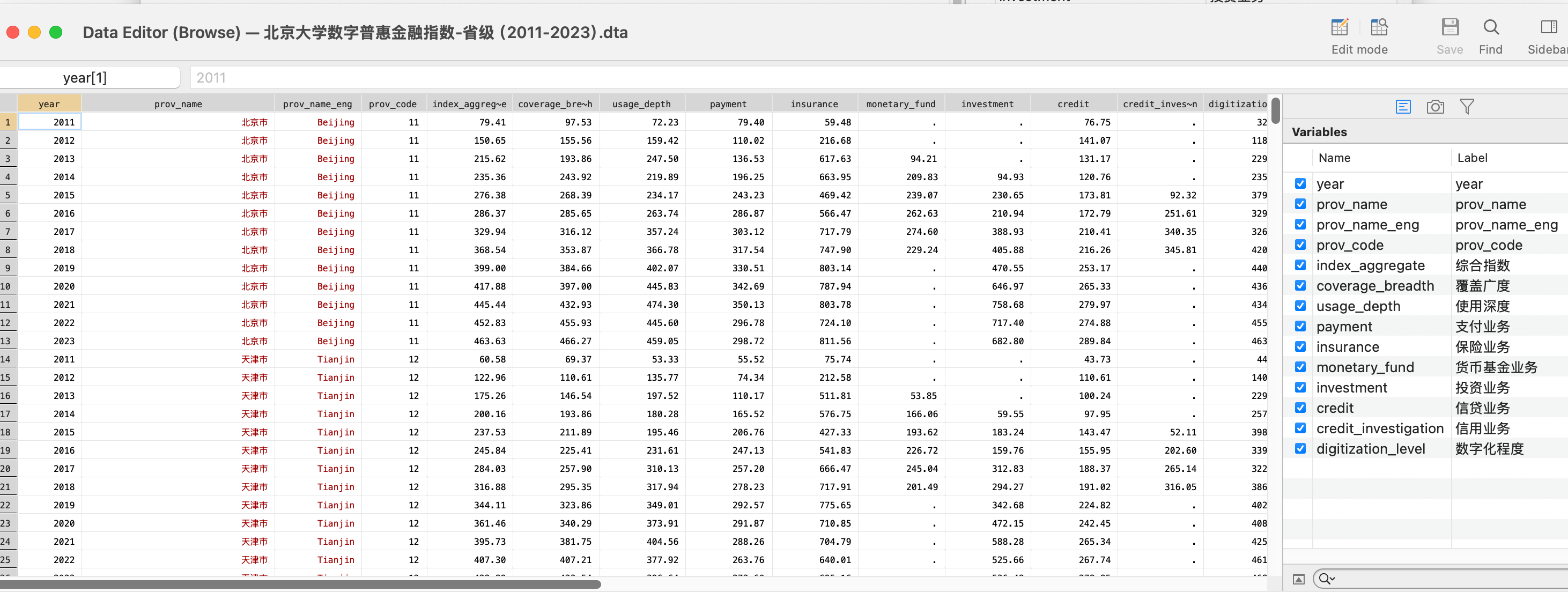 2、北大数字普惠金融指数-省级数据:(含 Excel + Stata格式)