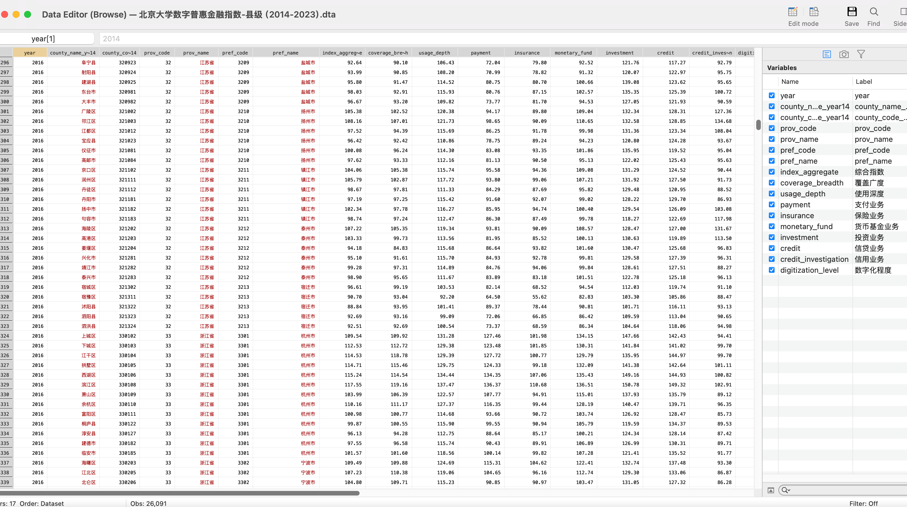 4、北大数字普惠金融指数-区县指数数据:(含 Excel + Stata格式)