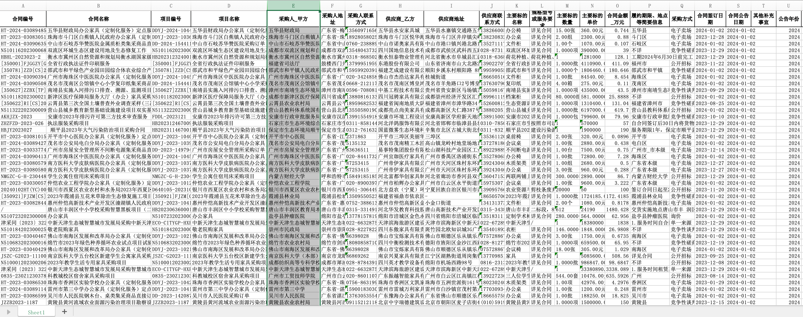 政府绿色采购明细数据包含24个关键指标,详细记录了采购过程中的关键信息。以下是数据的主要指标: