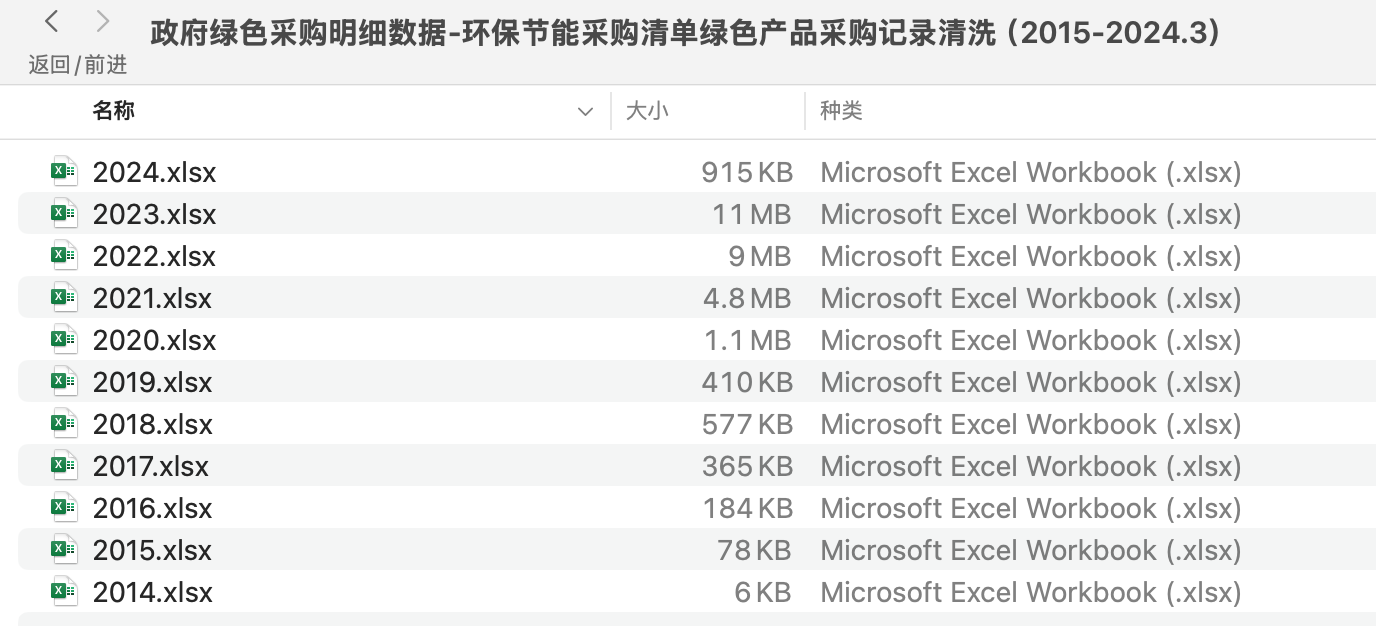 数据名称:全国政府绿色采购明细数据-环保节能采购清单绿色产品采购记录清洗(2015-2024.3)