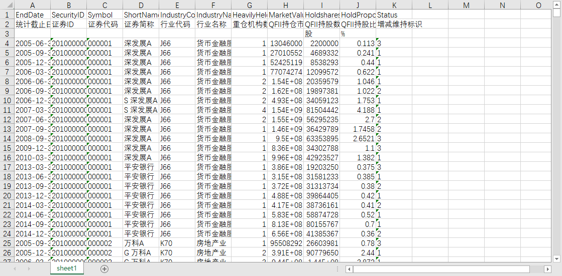 统计截止日期 证券ID 证券代码 证券简称 行业代码 行业名称 重仓机构数 QFII持仓市值 QFII持股数量 QFII持股比例 增减维持标识