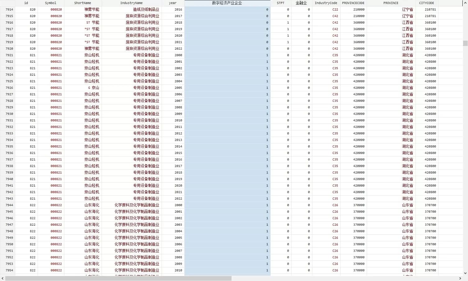 按照《数字经济及其核心产业统计分类(2021)》和《中国工业经济》,共25个大类产业属于数字经济产业。数字经济产业企业:1是,0否