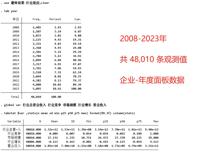 范围:2008 - 2023 年,共 48,010 条观测值,全部A股上市公司