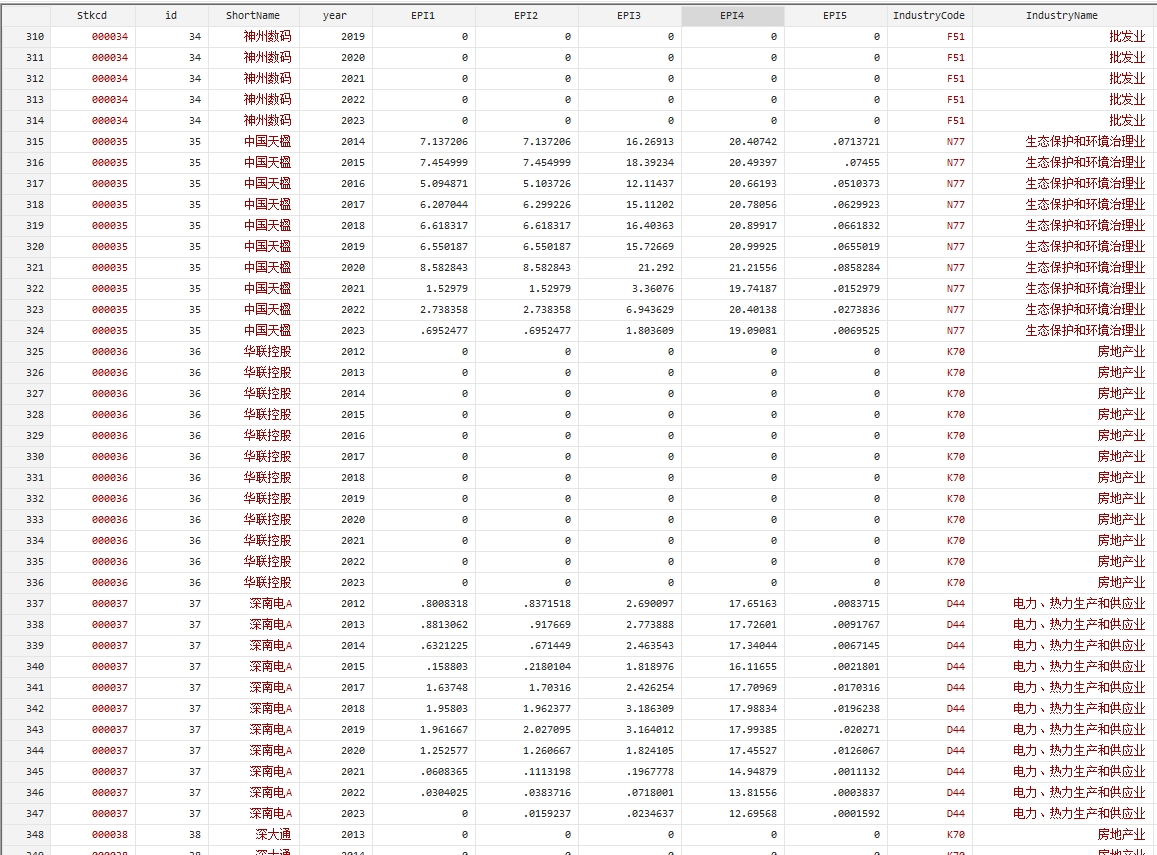 EPI3:绿色投资金额与所有者权益的比值,乘以100