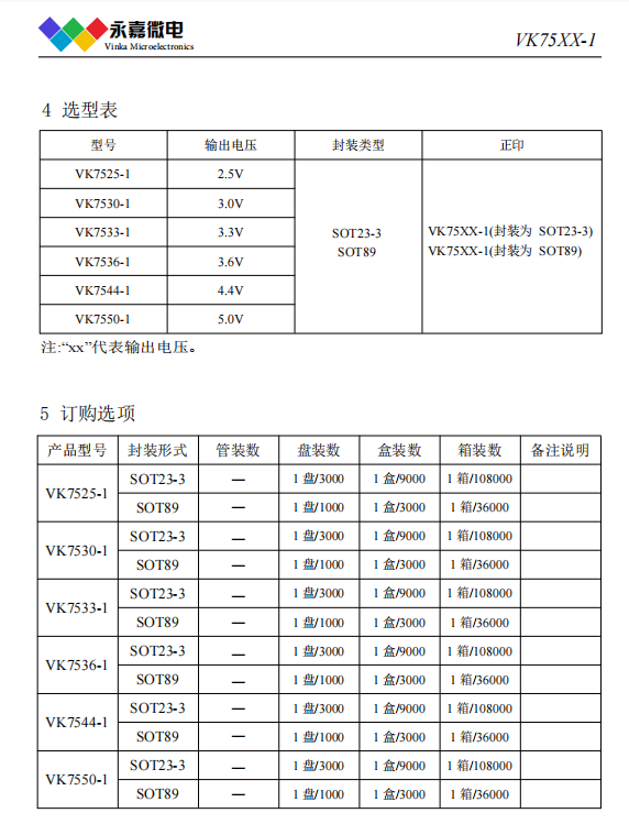 LDO稳压芯片/电源稳压芯片原厂-VK75XX-1 SOT23-3/SOT89