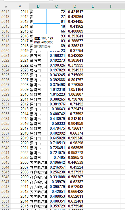 共计6个指标:year、city、超效率SBM、超效率CCR、年份、城市