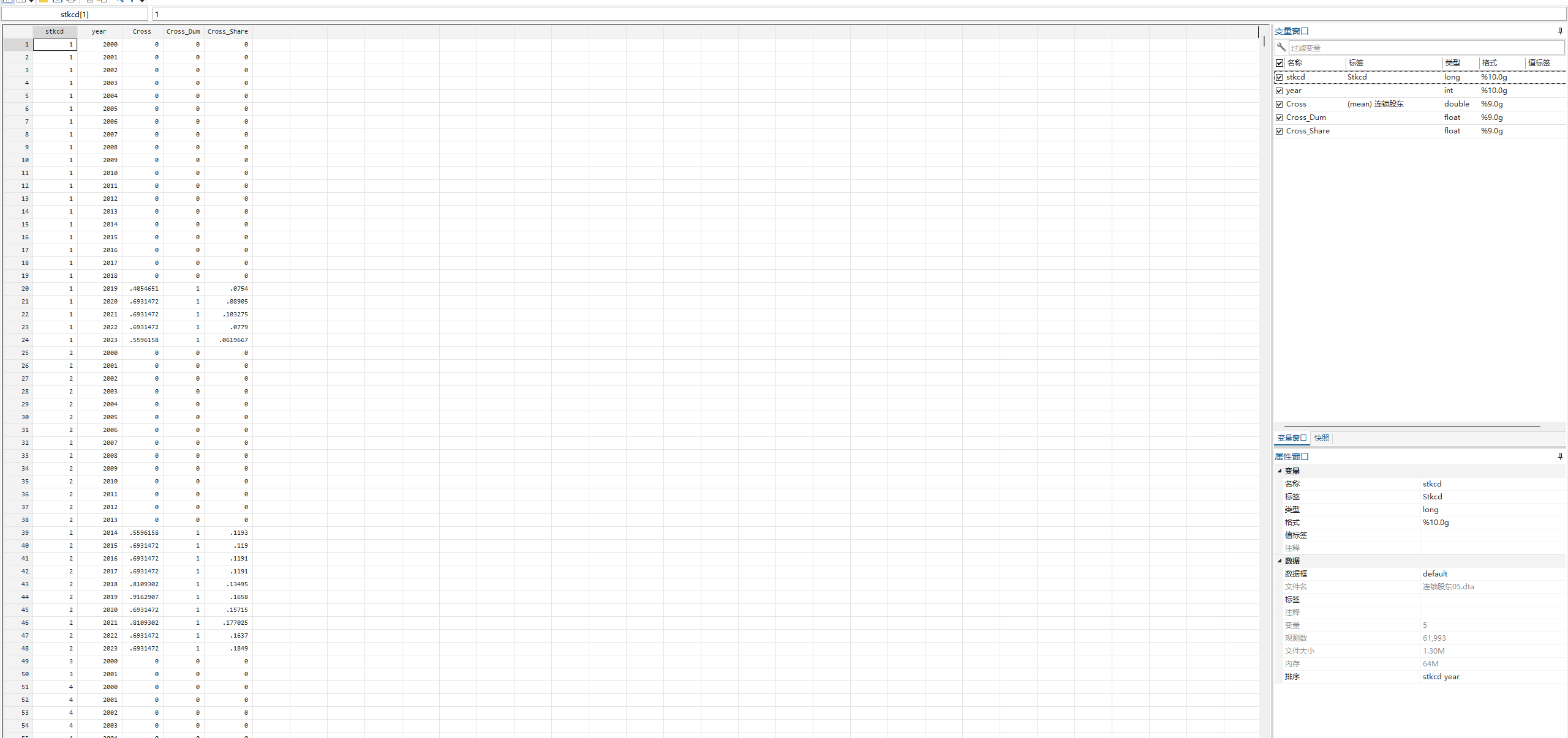 连锁股东的持股比例(Cross_Share)作为连锁股东的代理变量。具体计算方式为:对每家企业,在季度上计算其股份被连锁股东持有的比例之和,再求年度平均