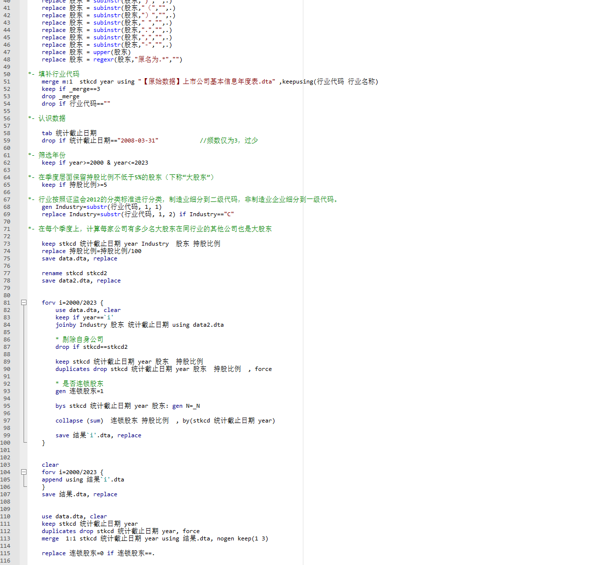 在季度层面保留持股比例不低于5%的股东,之所以选择5%作为界定门槛,是因为前期文献通常认为持股5%以上的股东可能对公司的治理和经营具有重大影响,并且中国的相关法律法规中,5%也是一条重要的股权门槛;