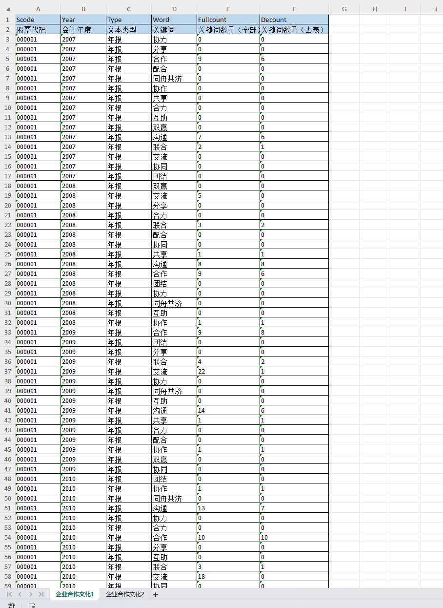 Fullcount[关键词数量(全部)]-没有去掉表格之前的全部文本中的关键词数量