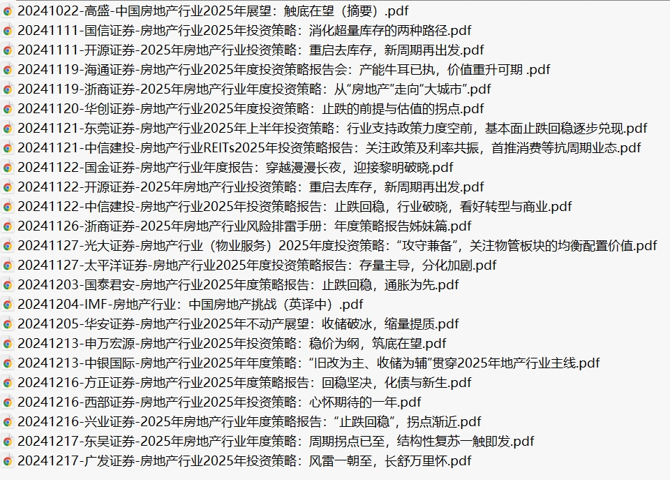 最近一两个月国内23家券商对2025年房地产市场展望报告合集