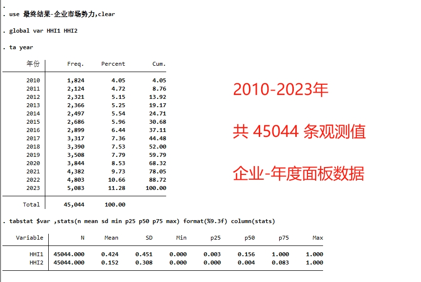 范围:2010 - 2023 年,共 45,044 条观测值,全部A股上市公司