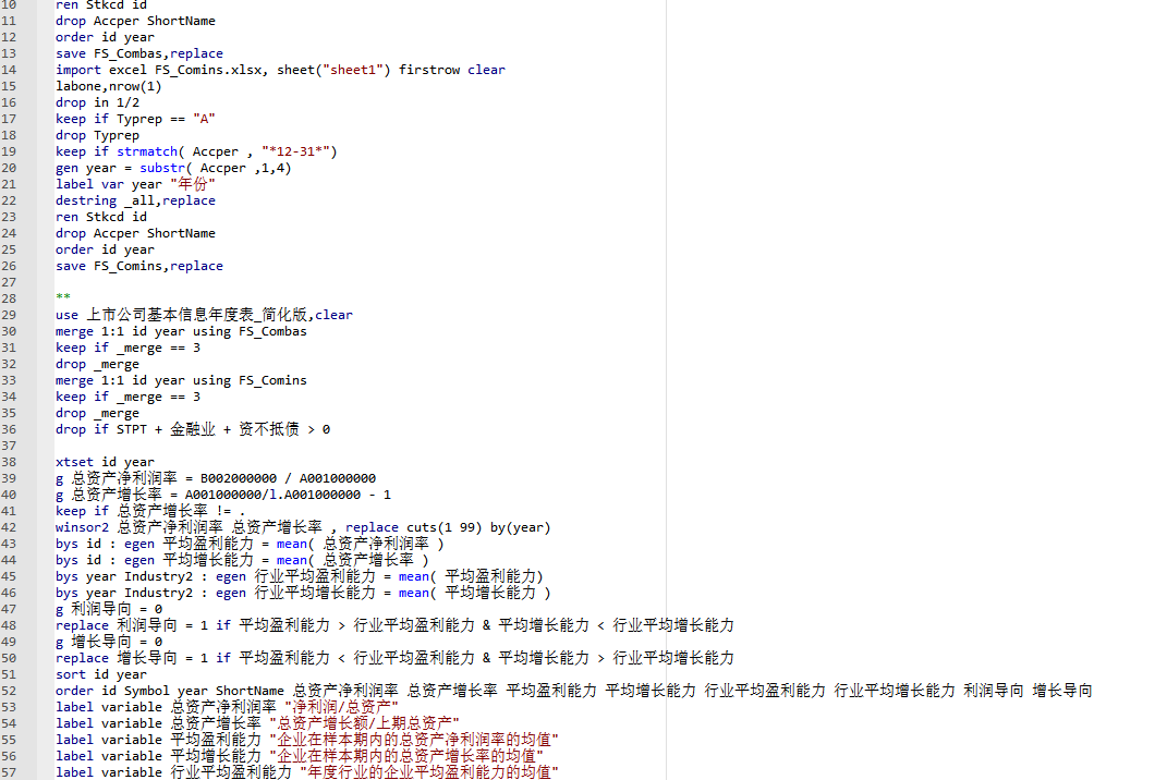 首先计算企业在样本期内的平均盈利(或增长)能力,再计算行业平均值:如果企业在样本期内的盈利能力高于行业平均水平并且增长能力低于行业平均水平,则将其识别为利润导向,值为 1 否则为 0;如果企业在样本期的增长能力高于行业水平并且盈利能力低于行业水平,则将其识别为增长导向,值为 1 否则为 0。