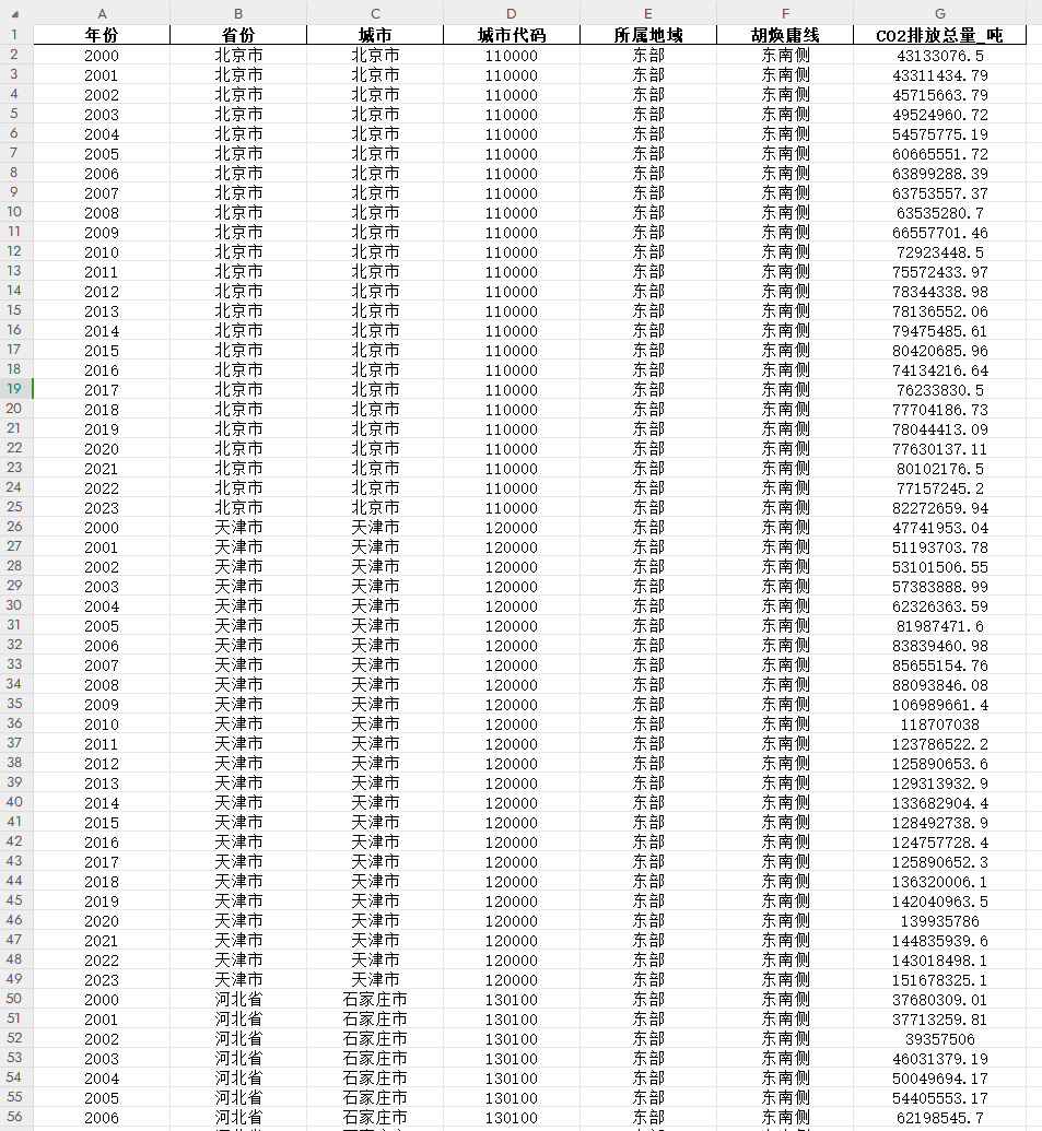 本次的数据是根据EDGAR资源提取的中国地级市CO2排放数据,数据年份为2000-2023年
