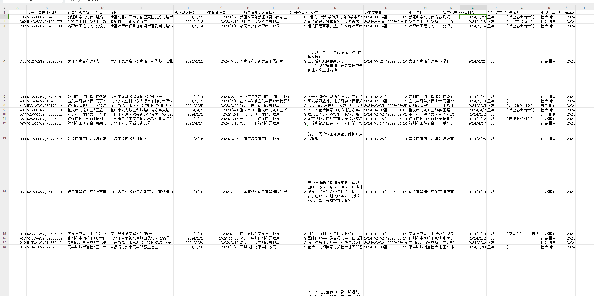统一社会信用代码、社会组织名称、法人、住所、成立登记日期、证书截止日期、业务主管单位、登记管理机关、注册资本(万元) 、业务范围、证书有效期、组织名称、法定代表人、成立时间、组织状态、组织标识、组织类型