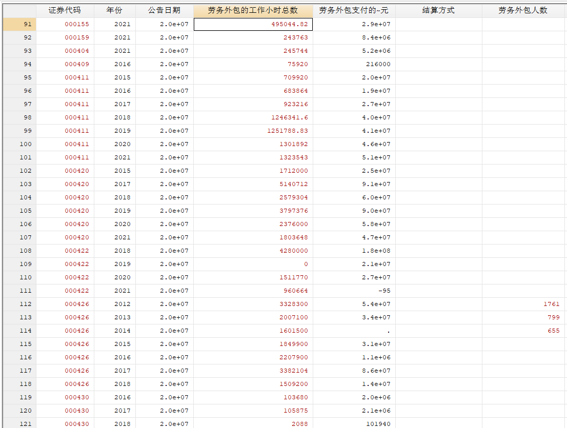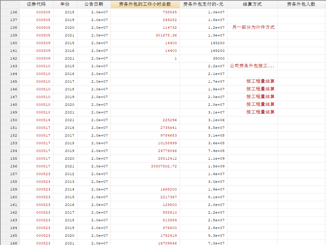 劳务外包的工作量总数(缺失严重)