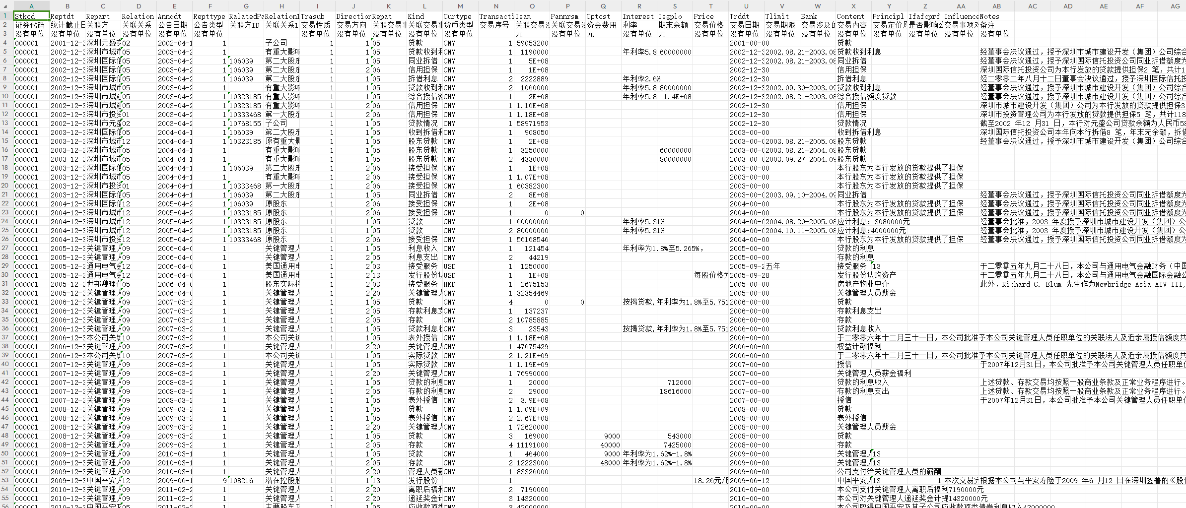 Trddt [交易日期] - 以YYYY-MM-DD列示,表示关联交易发生日期,没有具体发生日期MM-DD用00-00表示