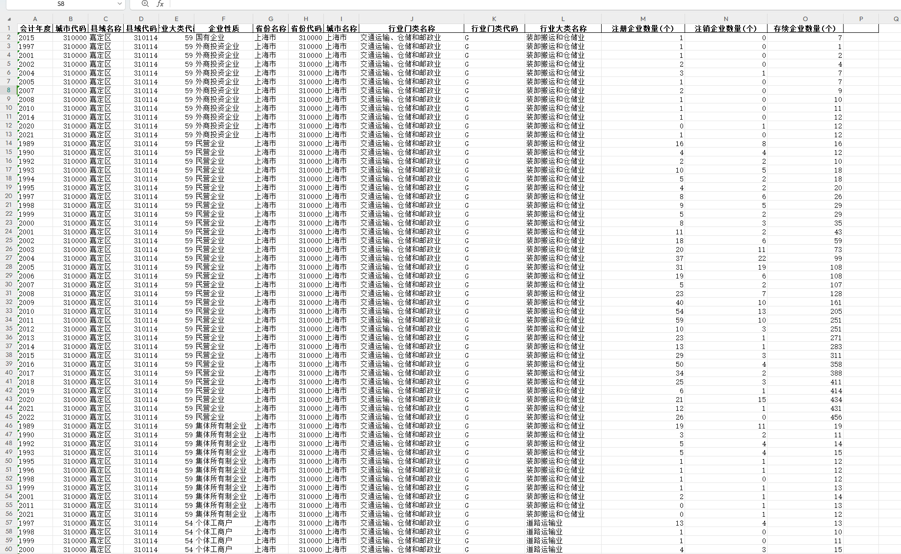 数据文件700万+各区县-各行业大类企业注册、存续、注销统计数据(1950-2022年)