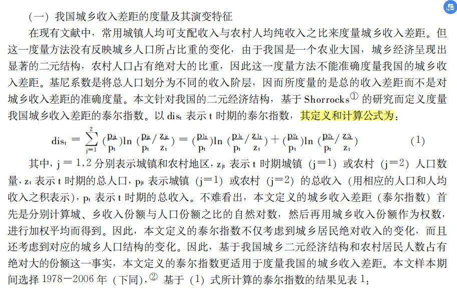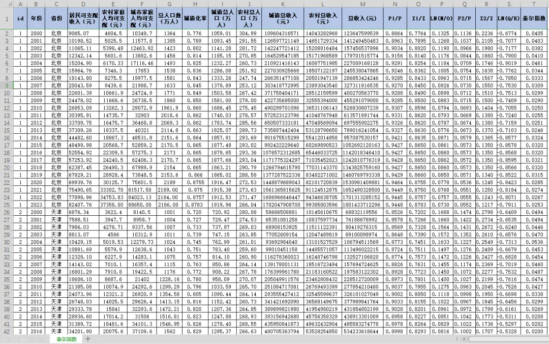 一、资源名称:2000-2023年31省泰尔指数/城乡收入差距:原始数据+计算过程+参考文献+计算结果