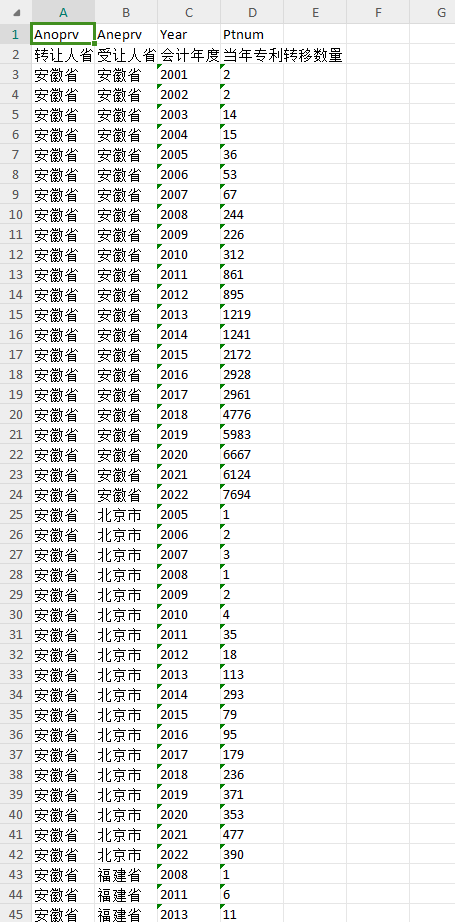【数据】省份间专利转移情况2001-2022年