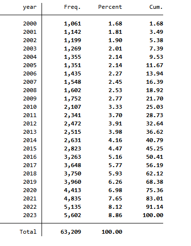 - 文件格式:Dta格式(使用Stata打开)、Xlsx格式(使用Excel打开)