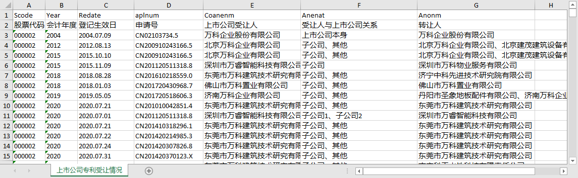 数据库说明:专利转移研究数据库(Patent Transfer Research Database,PTRD)基于国家知识产权局的专利转移数据,统计了省市间的专利转移情况以及上市公司及其参控股公司的专利转让和受让情况。PTRD还统计了分类号符合国家知识产权局《绿色技术专利分类体系》标准的绿色专利转移情况