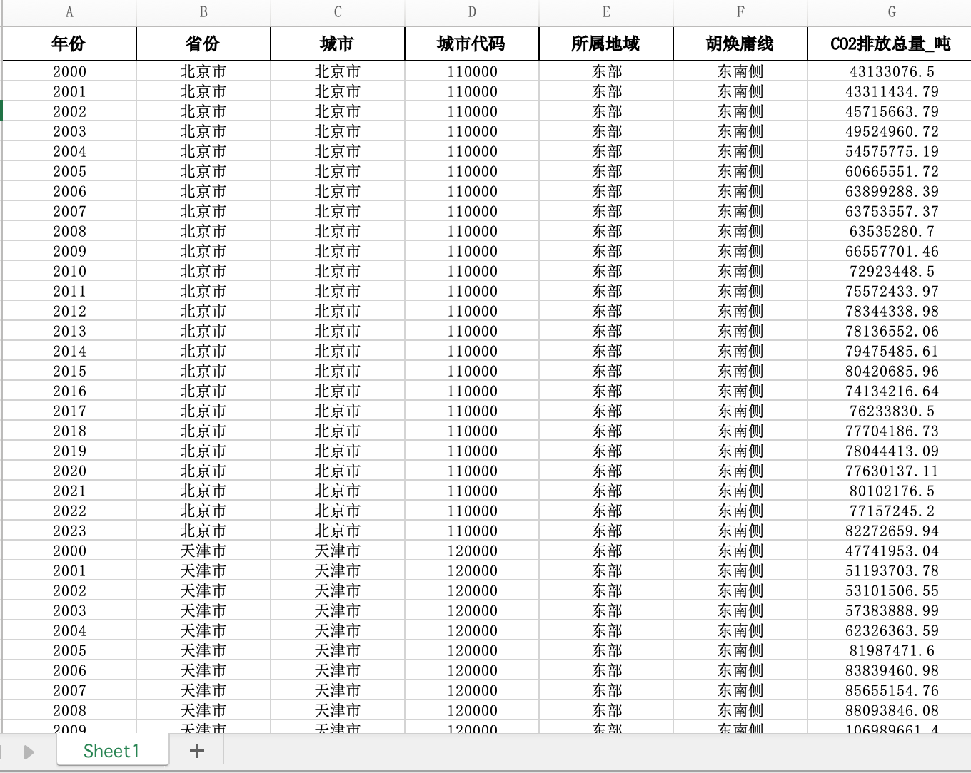 全国300地级市城市CO2排放数据地级市二氧化碳放总量(2000-2023年)