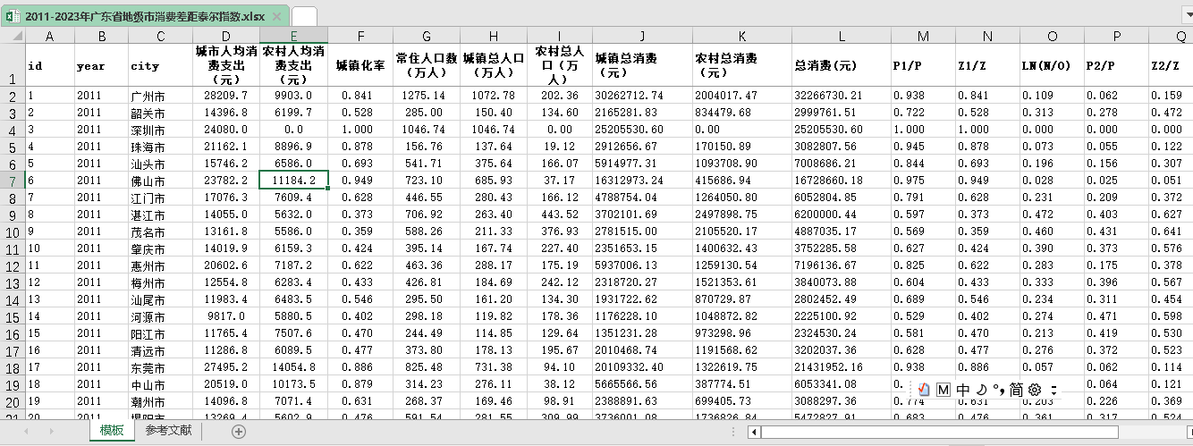 2011-2023年广东省地级市消费差距泰尔指数.xlsx